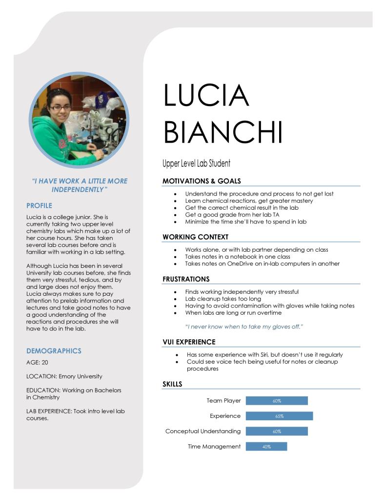 We found that all three of these situations frequently occur in a laboratory setting, so we focused on developing a VUI system that would augment the lab experience.