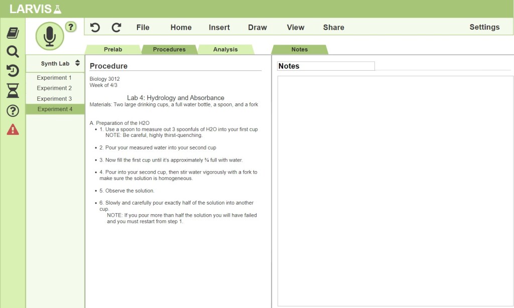 Our product, the Lab-Assisting Responsive Voice Integrated System (LARVIS) is a laboratory assistant and information management system for both educational and research lab contexts. LARVIS can organize a user’s lab-related files, read and transcribe notes, explain equipment and safety protocols, communicate with lab instructors, and more.